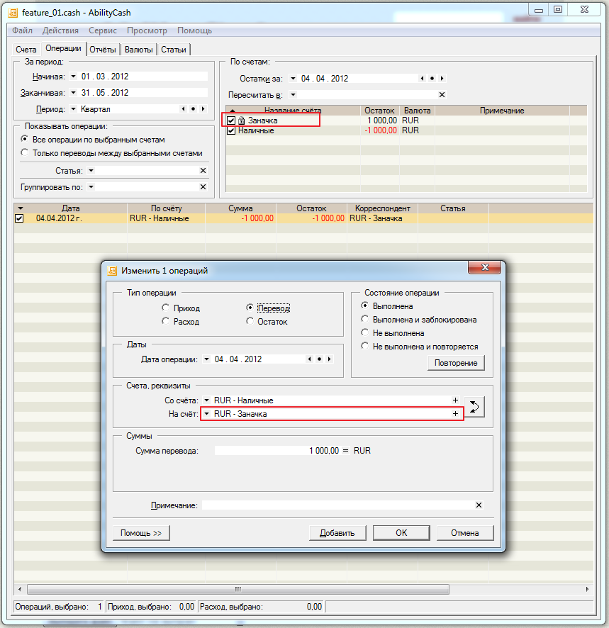 Список операций -> операции перевода