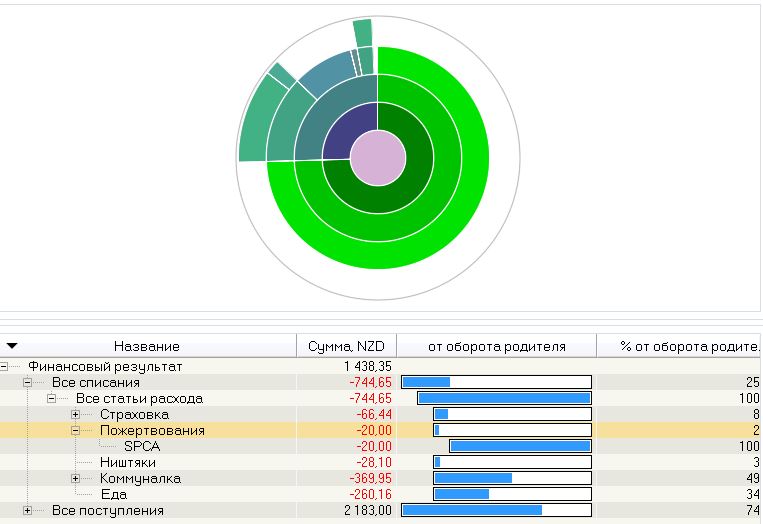 Место для нее как бы есть (родительская категория достаточно "широка" что бы вместить ее) но на внешних кругах - пустота. При выделении этой категории мышкой - ничего не подсвечивается (как делают другие сегменты диаграммы при выделении соответствующих им статей расходов.)