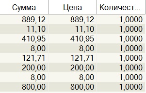 В итоге, смею надеяться только, что возможно когда-нибудь появится актуальная необходимость (или, простая возможность реализации): «регулировать отображаемое количество знаков, посредством настройки в соответствующей функции отображения, для любых цифирных данных». А то, как-то выглядит неэстетично (с моей точки зрения), для единичных количеств (в моем случае, там и дробных-то не бывает), видеть четыре нуля добавочно именно в графе количеств. Запись 1 шт., по количеству знаков, соперничает с суммой (см. картинку).
